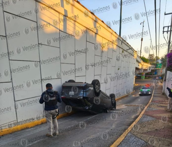 Al parecer el conductor tras perder el control de la unidad chocó contra el muro de la mencionada lateral para después volcarse con las llantas hacia arriba.