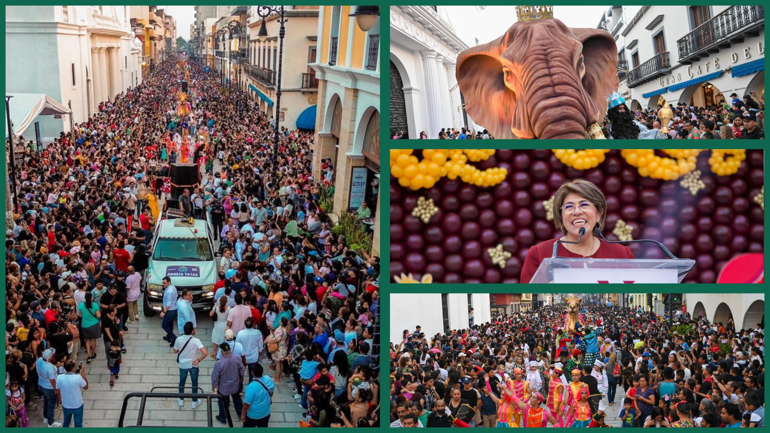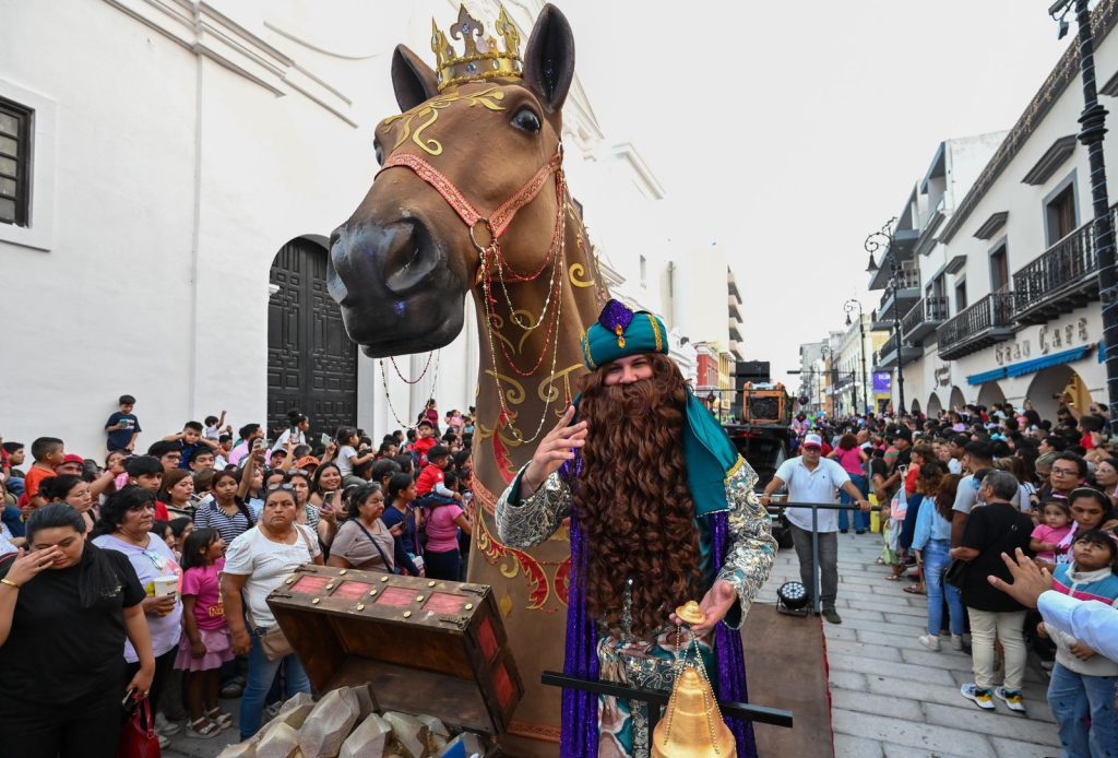 Miles de personas se congregaron para celebrar el Día de Reyes en el zócalo de la Heroica Ciudad de Veracruz, en un ambiente festivo que llenó de ilusión a niñas y niños, con un colorido desfile de los Reyes Magos y la tradicional partida de la rosca, que en esta ocasión midió 272 metros lineales, fortaleciendo las tradiciones y el sentido de identidad de la comunidad.