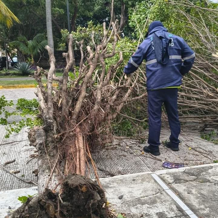Hernández Espejo agregó que cuadrillas están levantando árboles caídos y reparan semáforos dañados «para evitar accidentes y mantener el orden en nuestras avenidas».