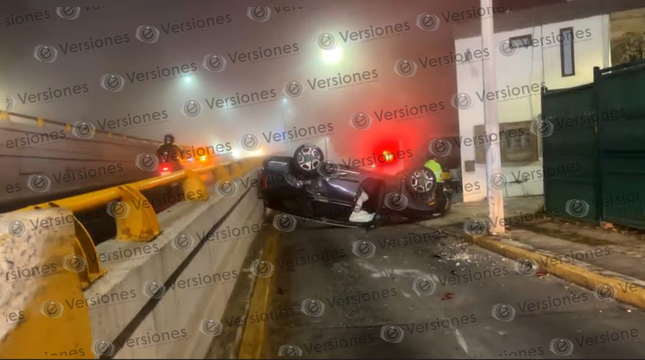 Dos heridos y daños materiales cuantiosos fueron el saldo de la volcadura de una camioneta en la lateral de Circuito Presidentes, municipio de Xalapa.