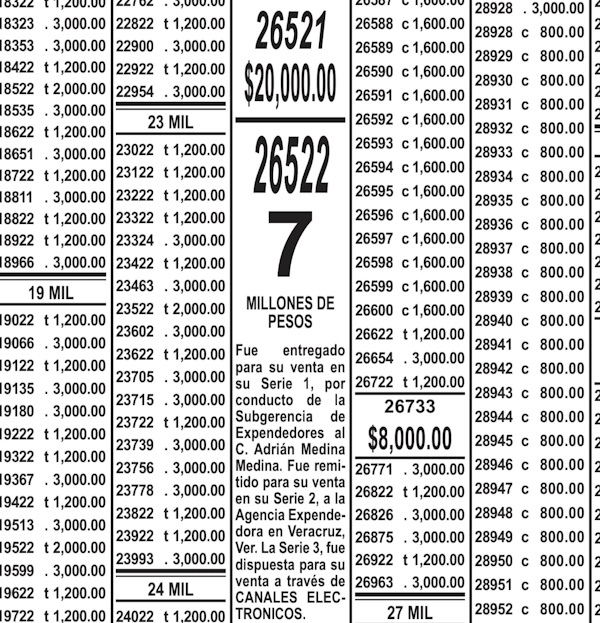 Fue entregado para su venta en su serie 1, por conducto de la Subgerencia de Expendedores al C. Adrián Medina Medina.