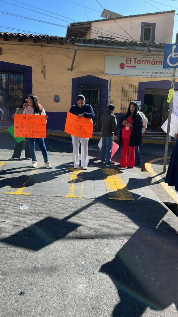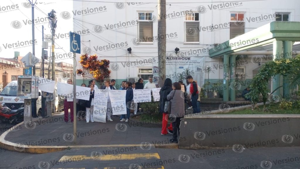 Trabajadores del Centro de Especialidades Médicas «Dr. Rafael Lucio», de Xalapa, se manifestaron este viernes.