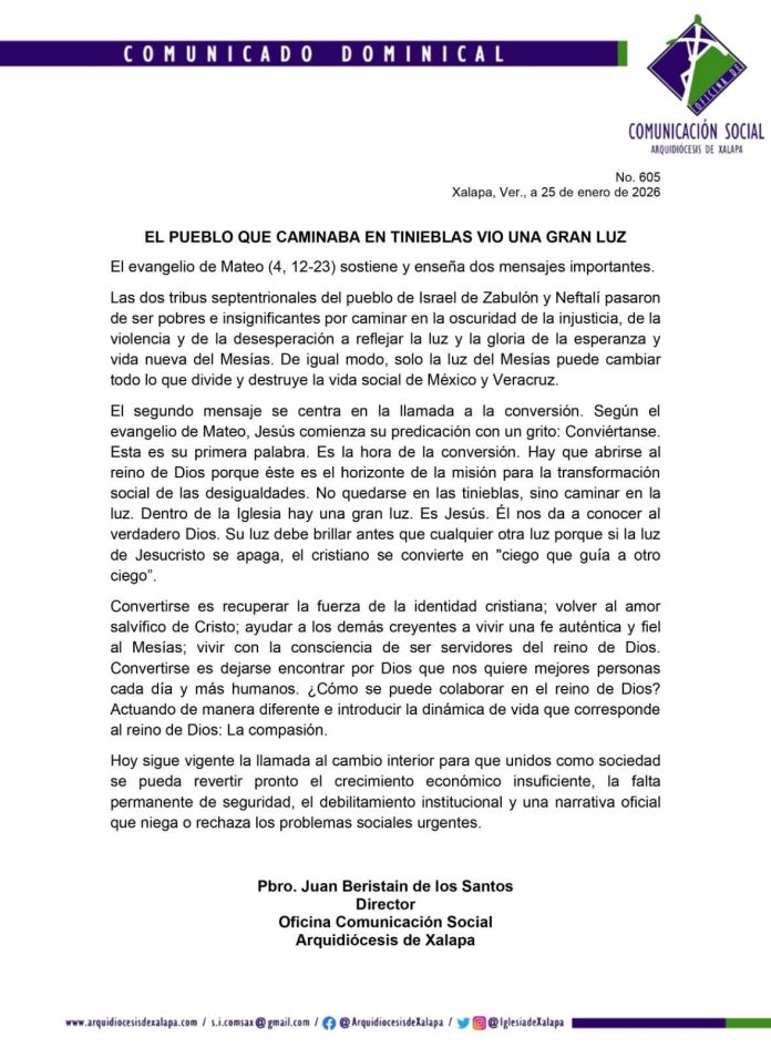 «Hay una narrativa oficial que niega o rechaza los problemas sociales urgentes»: Arquidiócesis de Xalapa