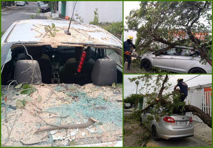 Y derivado de las fuertes rachas de viento registradas durante la madrugada de este sábado por la presencia del Frente Frío No. 32 en la ciudad de Veracruz, personal de Protección Civil Municipal atendió la caída de tres árboles en distintos puntos de la ciudad, uno de ellos sobre un vehículo, sin que se reportaran personas lesionadas.