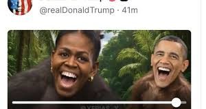 Washington. El presidente de Estados Unidos, Donald Trump, desató ayer furia e indignación entre los demócratas después de publicar un video, en su cuenta de Truth Social, en el que mostró al ex mandatario Barack Obama y su esposa Michelle como monos en una jungla, en el marco de teorías conspirativas sobre las elecciones de … Sigue leyendo Ahora sí se pasó: Trump publica video en el que pone a los Obama como monos
