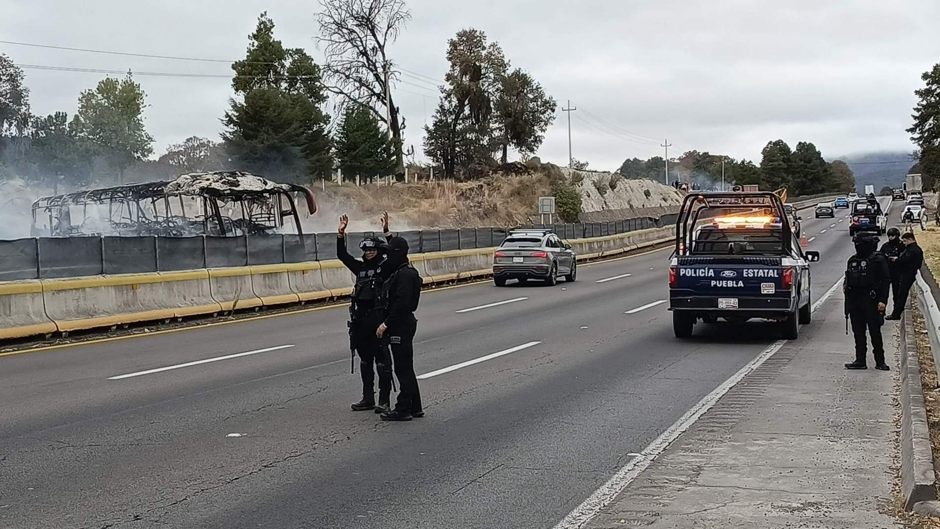 Hay reportes de que se registraron incendios en al menos cuatro puntos de la vialidad, específicamente en los kilómetros 71, 72, 76 y 79, en la zona de Santa Rita Tlahuapan y el paraje conocido como Los Cochinitos, en dirección a San Martín Texmelucan y Puebla. Las unidades siniestradas incluyen un tráiler, una camioneta de carga, un camión de transporte público y un autobús de la línea ADO.