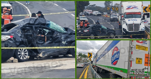 Una embarazada falleció en el choque de un tráiler y un auto en la carretera Xalapa-Veracruz, a la altura de la localidad Miradores, municipio de Emiliano Zapata.